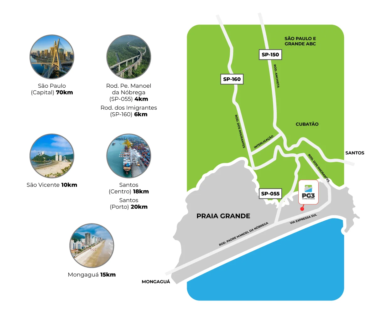 Os galpões estão localizados na Rua Sérgio Gregório, números 101, 121 e 141, no bairro Vila Sonia, em Praia Grande / SP.